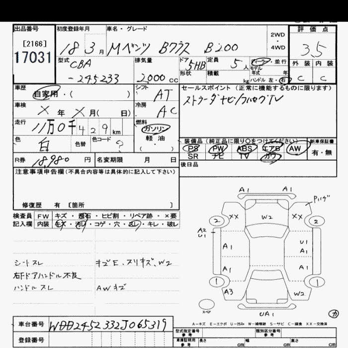 MERCEDES-BENZ B CLASS B200 - лот 17031