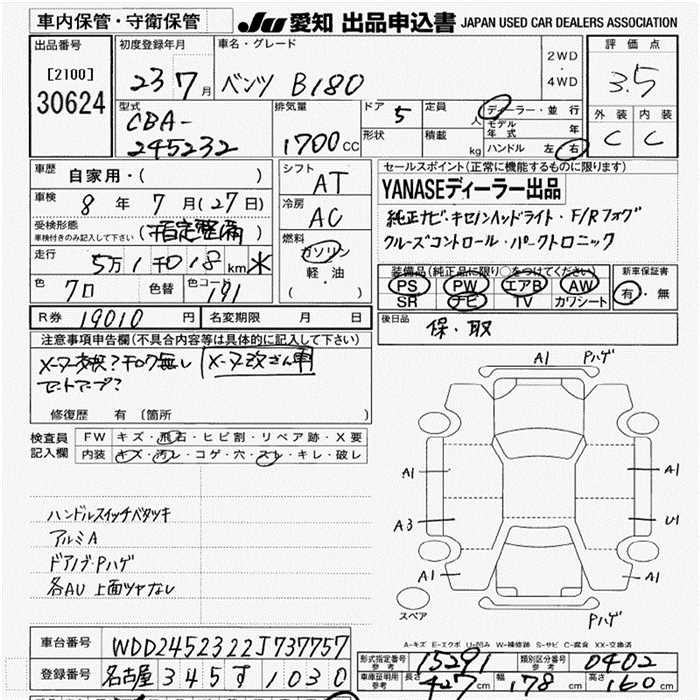 MERCEDES-BENZ B CLASS B180 - лот 30624