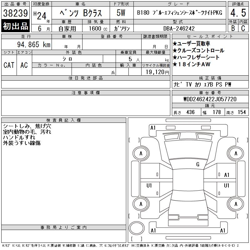 MERCEDES-BENZ B CLASS B180 BEFI SPORT NIGHT PKG - лот 38239