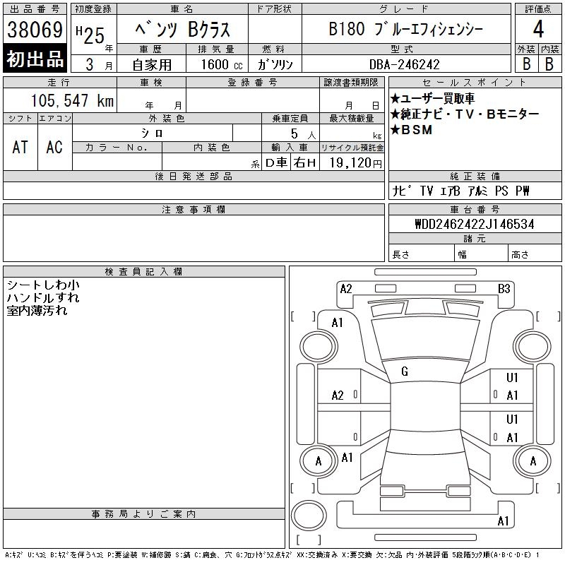 MERCEDES-BENZ B CLASS B180 BLUEEFFICIENCY - лот 38069