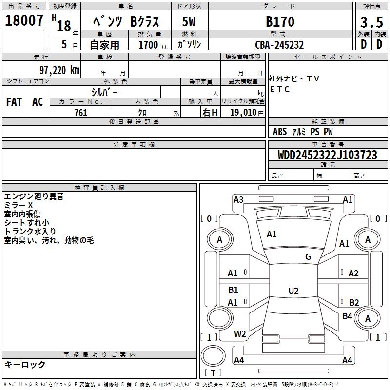 MERCEDES-BENZ B CLASS B170 - лот 18007