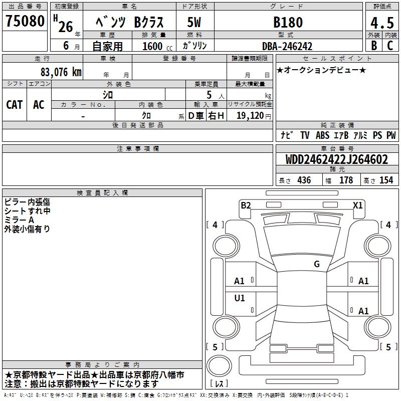 MERCEDES-BENZ B CLASS B180 - лот 75080