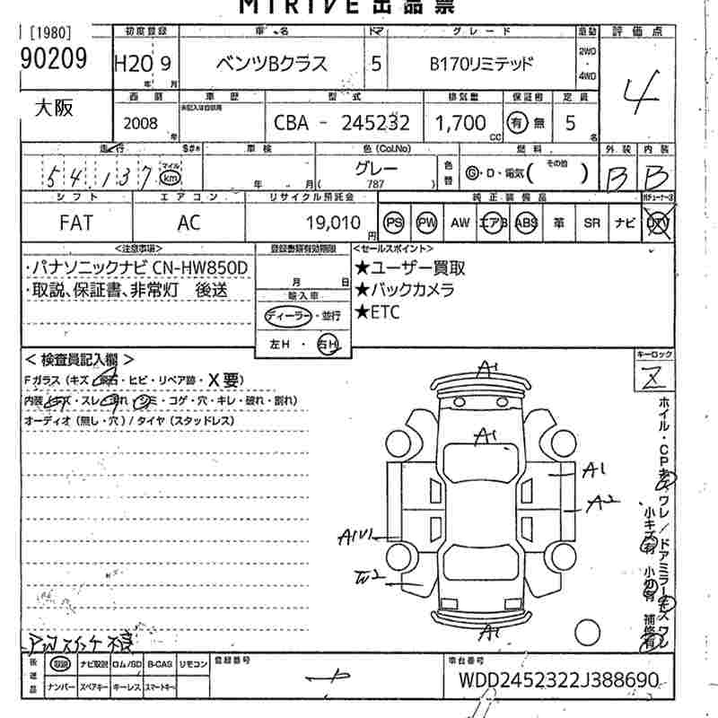 MERCEDES-BENZ B CLASS B170 - лот 90209