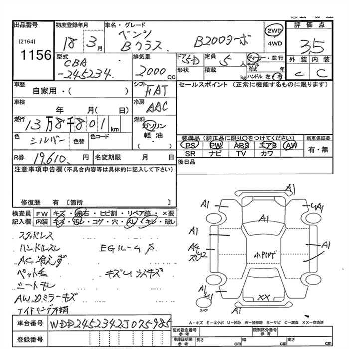 MERCEDES-BENZ B CLASS B200 TURBO - лот 1156