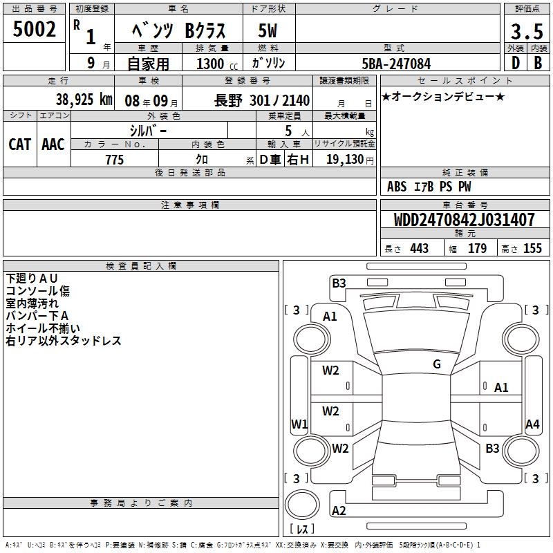 MERCEDES-BENZ B CLASS - лот 5002