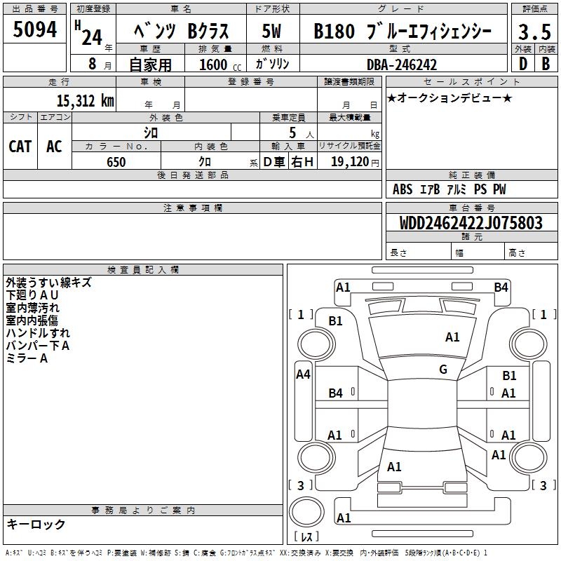 MERCEDES-BENZ B CLASS B180 BLUEEFFICIENCY - лот 5094