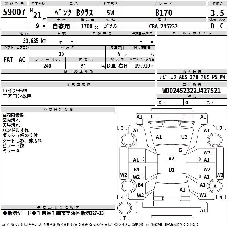 MERCEDES-BENZ B CLASS B170 - лот 59007