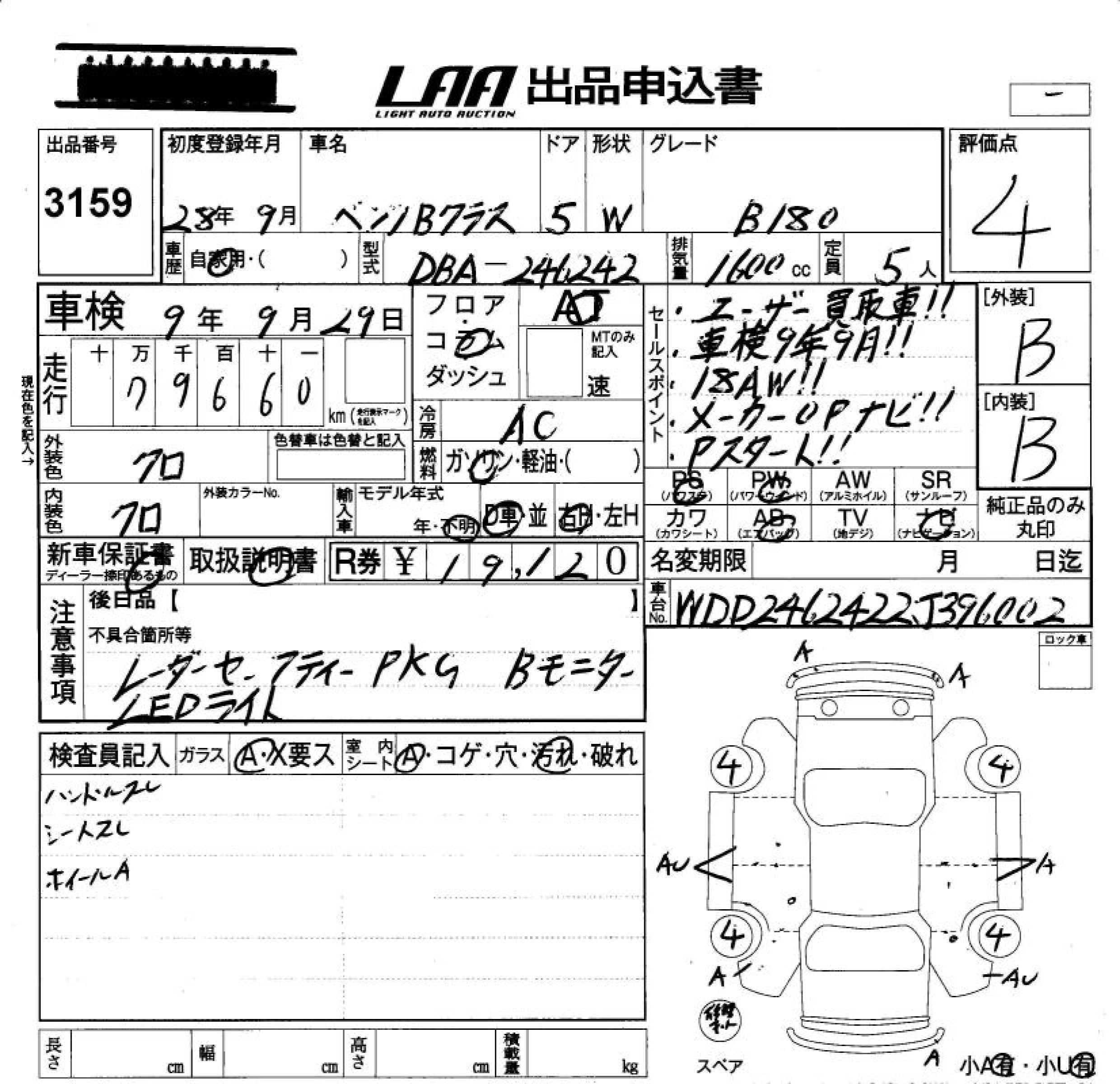MERCEDES-BENZ B CLASS B180 - лот 3159