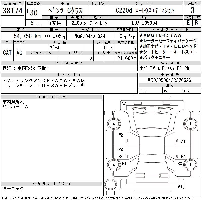 MERCEDES-BENZ C CLASS C220D LOW RE LIGHT EDITION - лот 38174