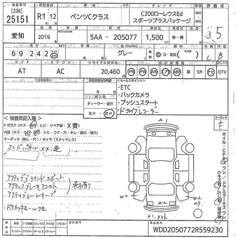 MERCEDES-BENZ C CLASS C200 LOW RE LIGHT ED SPORT PLUS PACKAGE - лот 25151
