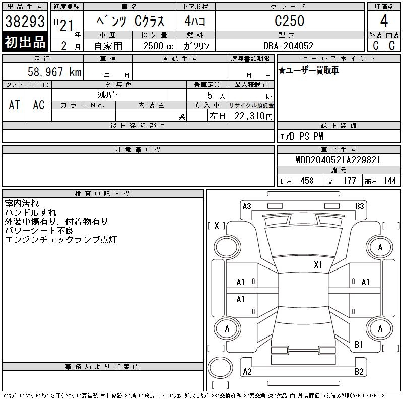 MERCEDES-BENZ C CLASS C250 - лот 38293