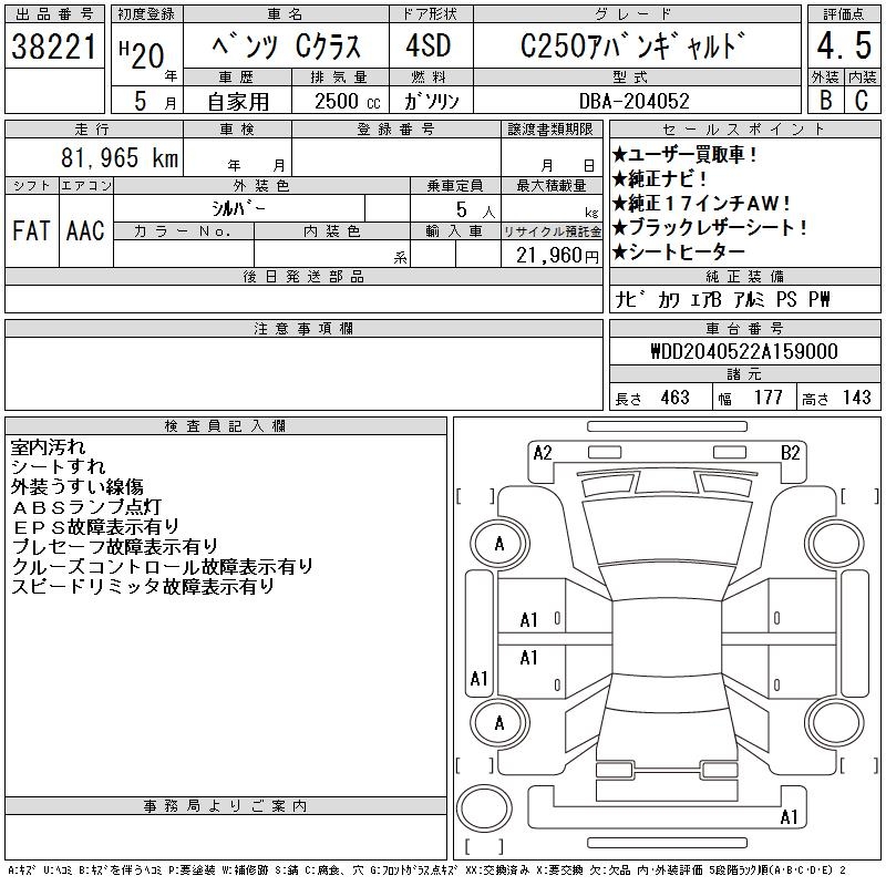 MERCEDES-BENZ C CLASS C250 AVANTGARDE - лот 38221