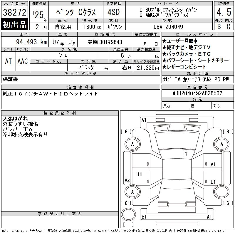 MERCEDES-BENZ C CLASS C180 BEFI AVANTGARDE - лот 38272