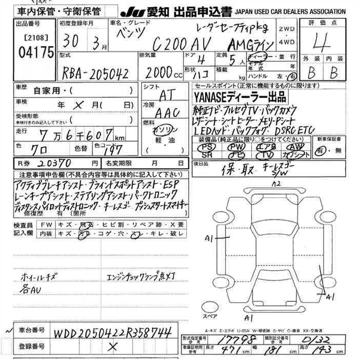 MERCEDES-BENZ C CLASS C200AGAMG LINE RADAR SE-F - лот 4175