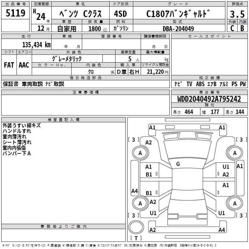MERCEDES-BENZ C CLASS C180 AVANTGARDE - лот 5119