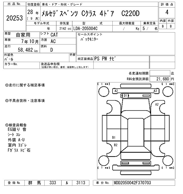 MERCEDES-BENZ C CLASS C220D - лот 20253