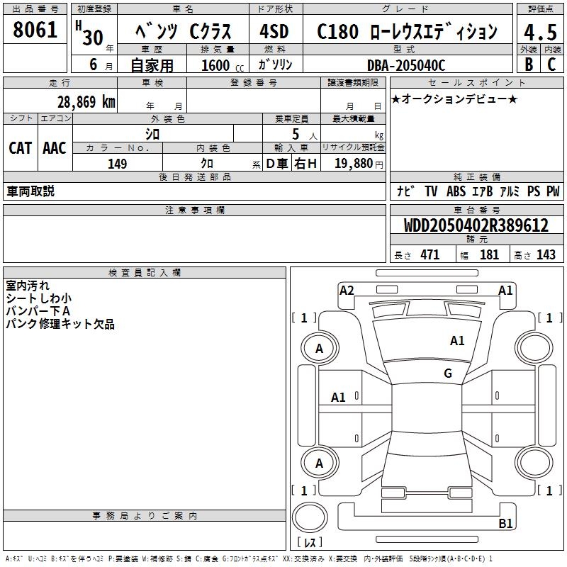 MERCEDES-BENZ C CLASS C180 LOW RE LIGHT EDITION - лот 8061
