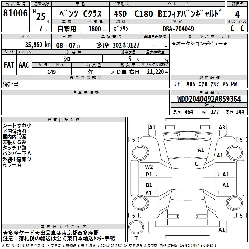 MERCEDES-BENZ C CLASS C180 BEFI AVANTGARDE - лот 81006
