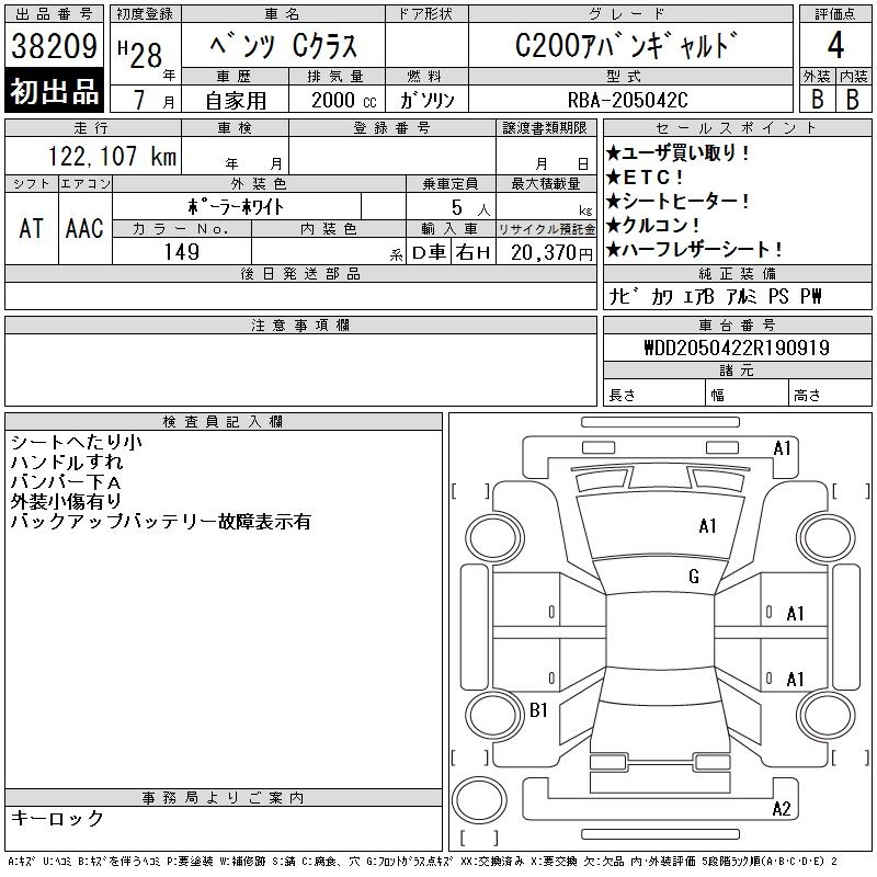 MERCEDES-BENZ C CLASS C200 AVANTGARDE - лот 38209