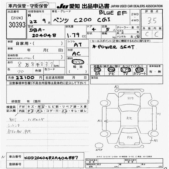 MERCEDES-BENZ C CLASS C200 CGI BLUEEFFICIENCY - лот 30393