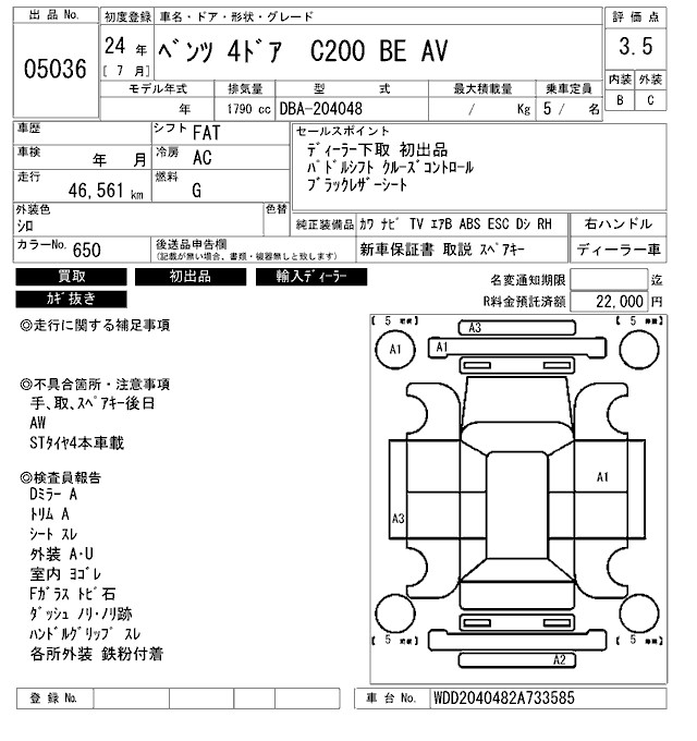 MERCEDES-BENZ C CLASS C200 BE AV - лот 5036