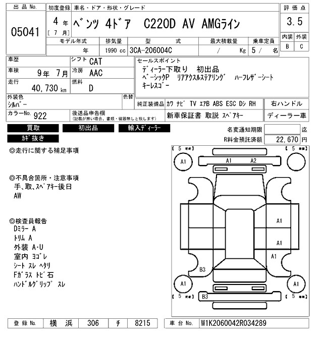 MERCEDES-BENZ C CLASS C220D AV AMG LINE - лот 5041