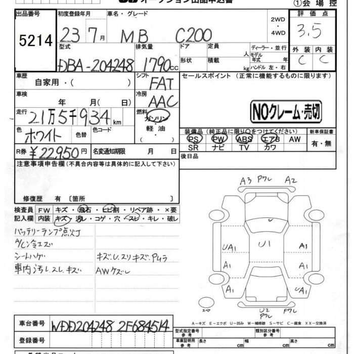 MERCEDES-BENZ C CLASS C200 - лот 5214