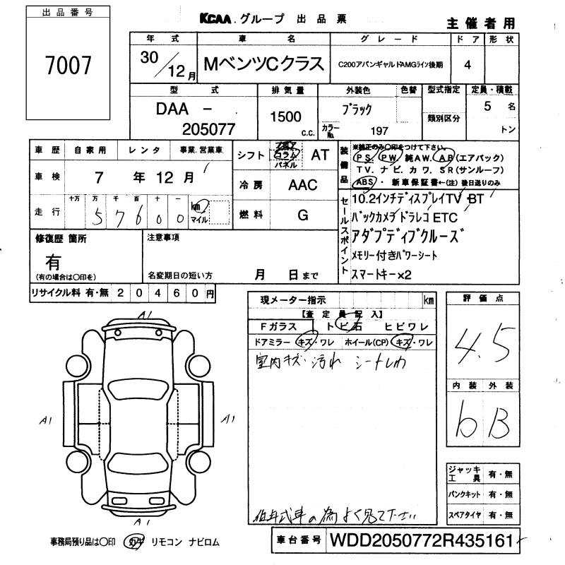 MERCEDES-BENZ C CLASS C200 AVANTGARDE AMGLAI - лот 7007