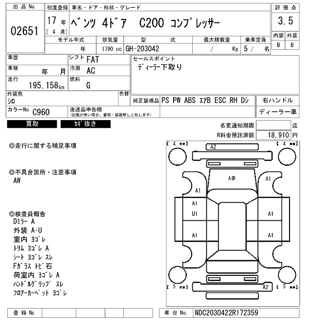 MERCEDES-BENZ C CLASS C200 COMPRESSOR - лот 2651