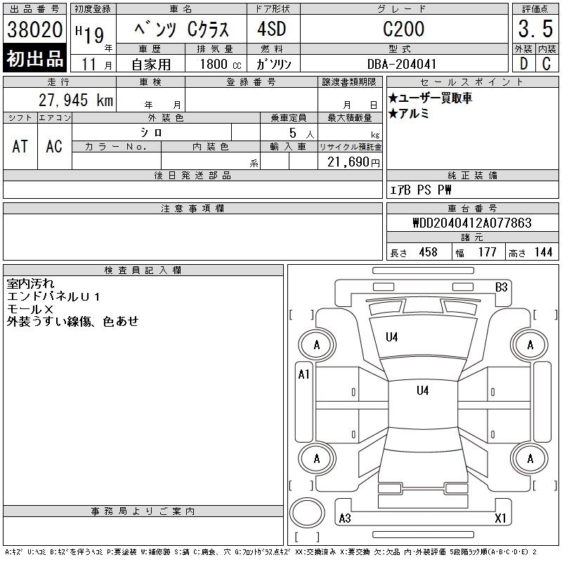 MERCEDES-BENZ C CLASS C200 - лот 38020