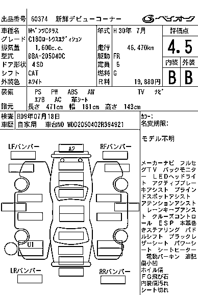 MERCEDES-BENZ C CLASS C180 LOW RE LIGHT EDITION - лот 60374