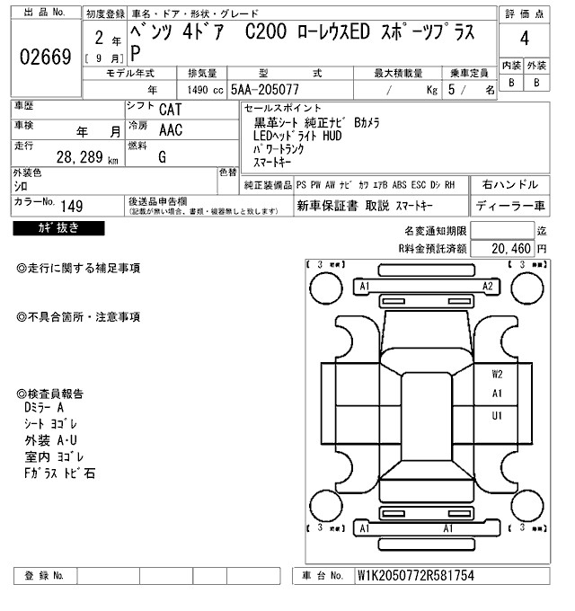 MERCEDES-BENZ C CLASS C200 LOW RE LIGHT ED SPORT PLUS P - лот 2669