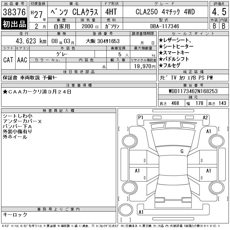 MERCEDES-BENZ CLA CLA250 4 MATIC 4WD - лот 38376