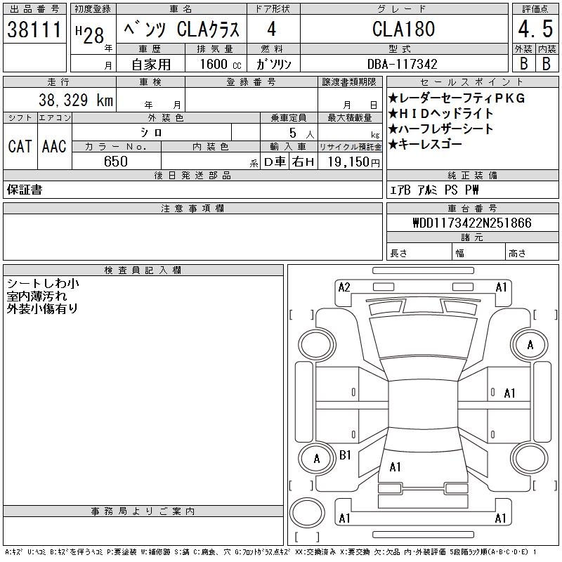 MERCEDES-BENZ CLA CLA180 - лот 38111
