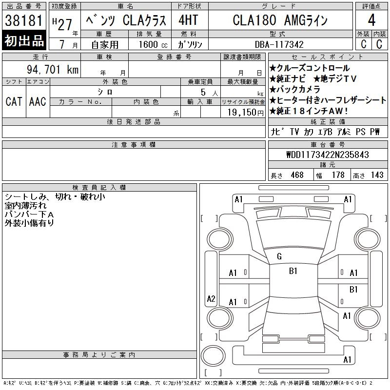 MERCEDES-BENZ CLA CLA180 AMG LINE - лот 38181
