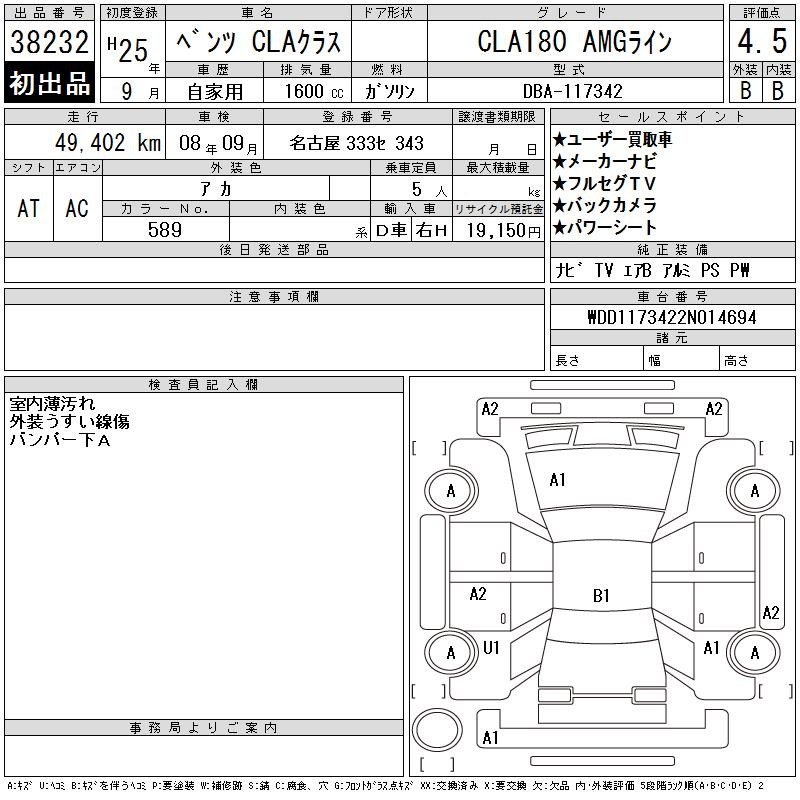 MERCEDES-BENZ CLA CLA180 AMG LINE - лот 38232