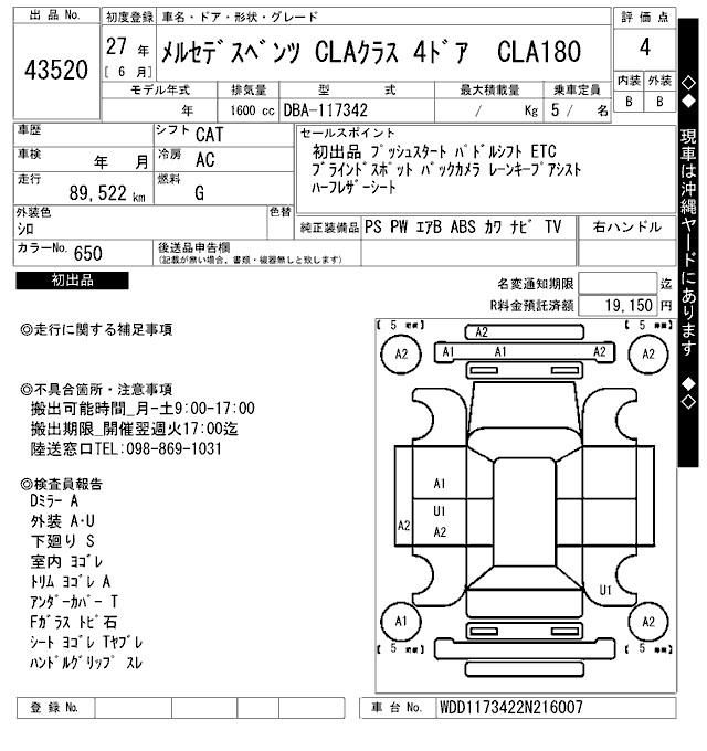 MERCEDES-BENZ CLA CLA180 - лот 43520