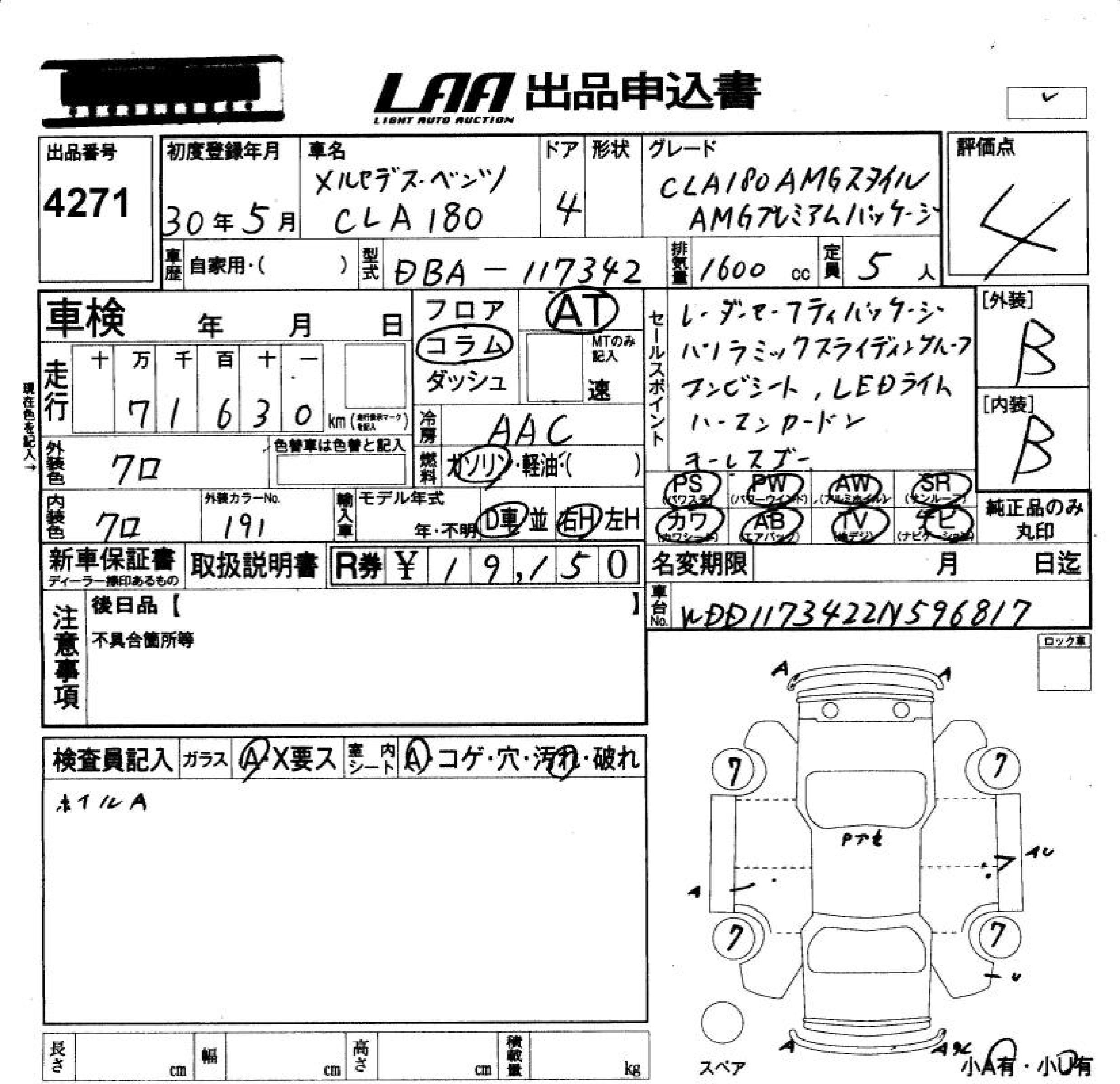 MERCEDES-BENZ CLA CLA180 AMG STYLE - лот 4271