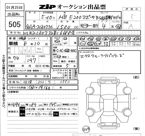 MERCEDES-BENZ E CLASS E 200 SP BSGTOUSAI MODEL - лот 505