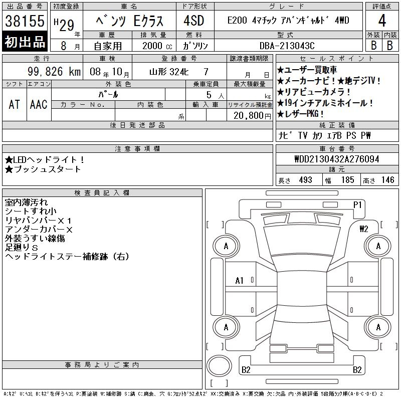 MERCEDES-BENZ E CLASS E200 4M AVANT GYARU4WD - лот 38155