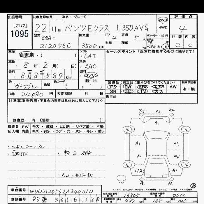 MERCEDES-BENZ E CLASS E350 AVANTGARDE - лот 1095