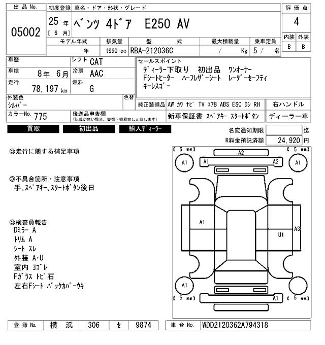 MERCEDES-BENZ E CLASS E250 AV - лот 5002
