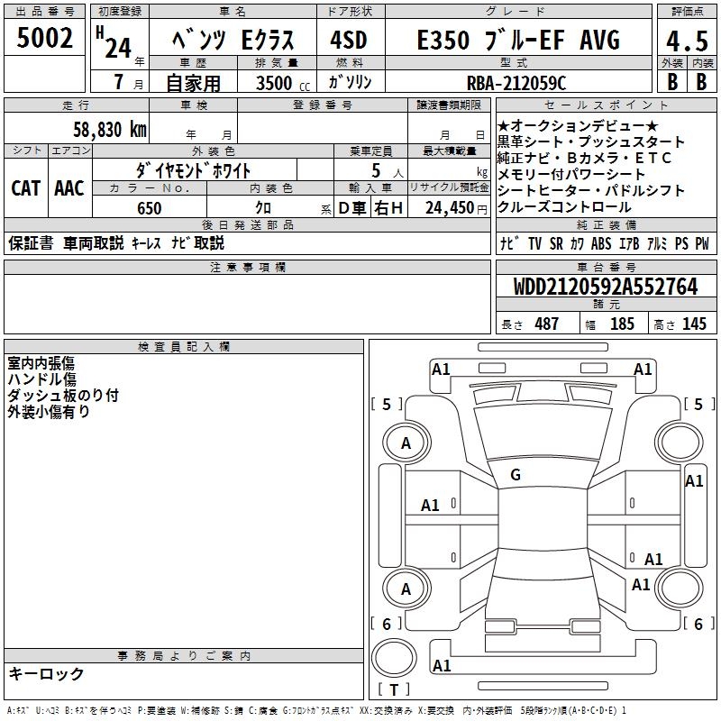 MERCEDES-BENZ E CLASS E350 BLUE EF AVG - лот 5002