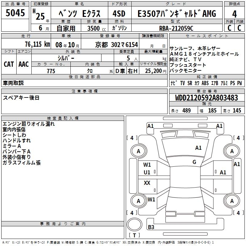 MERCEDES-BENZ E CLASS E350 AVANTGARDE AMG - лот 5045