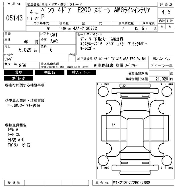 MERCEDES-BENZ E CLASS E200 SPORT AMG LINE INTERIOR P - лот 5143