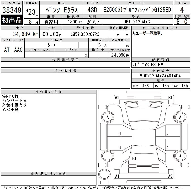 MERCEDES-BENZ E CLASS E250CGI BEFI AVANT G125 - лот 38349