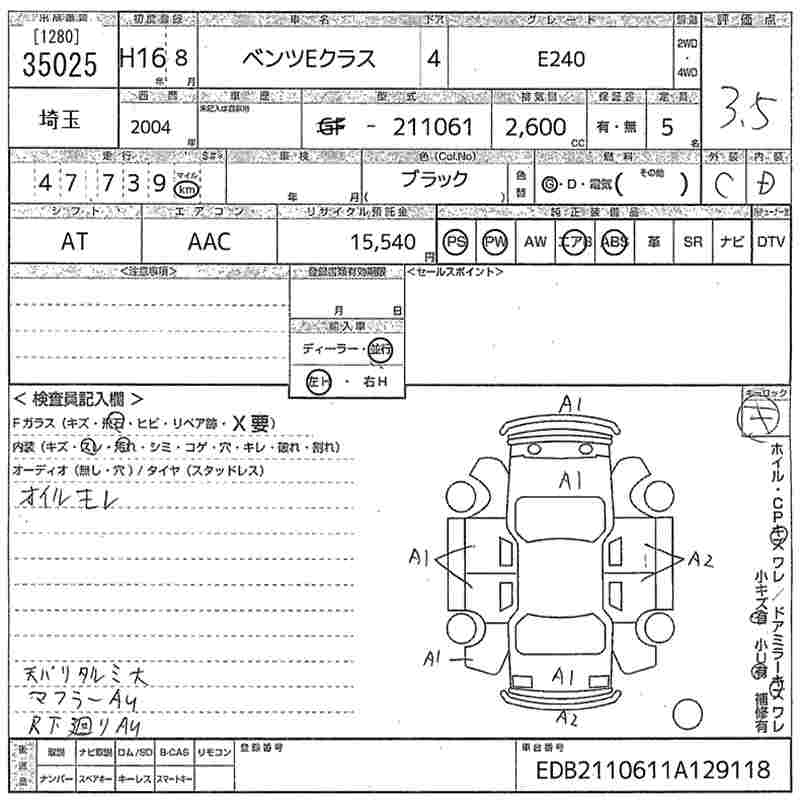 MERCEDES-BENZ E CLASS E240 - лот 35025