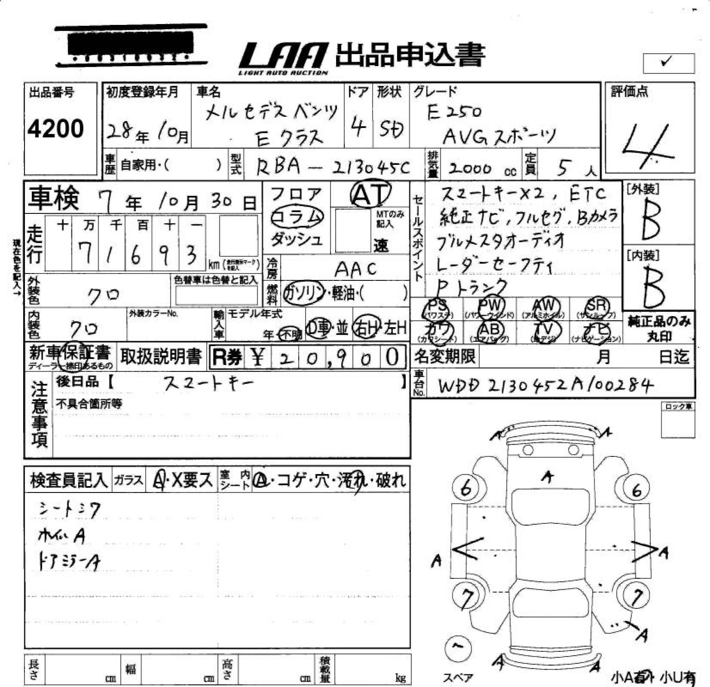 MERCEDES-BENZ E CLASS E250 AVANTGARDE SPOILER - лот 4200