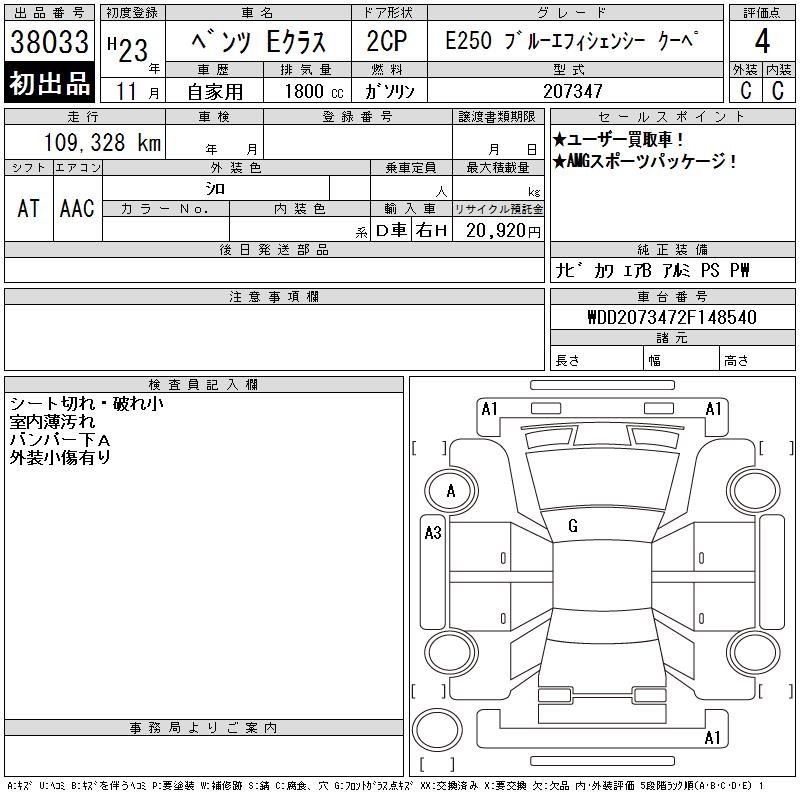 MERCEDES-BENZ E CLASS E250 BEFISHENSI- COUPE - лот 38033