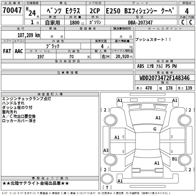 MERCEDES-BENZ E CLASS E250 BEFISHENSI- COUPE - лот 70047